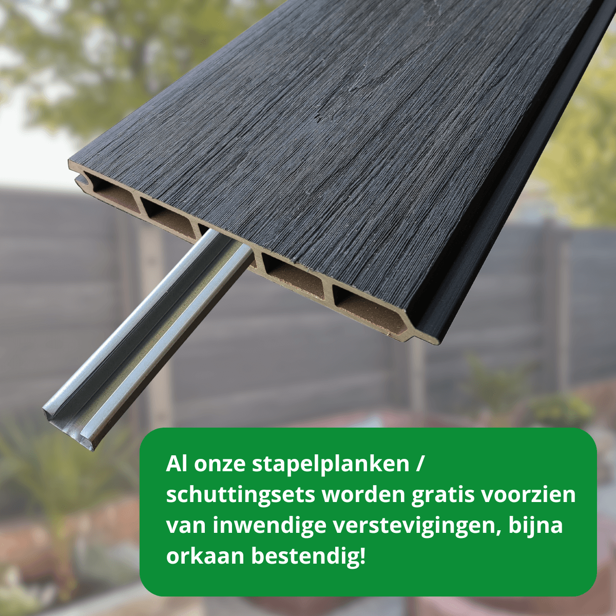 Bij de schutting sets worden standaard 2 inwendige verstevigingsbalken per volledige schutting set meegeleverd.