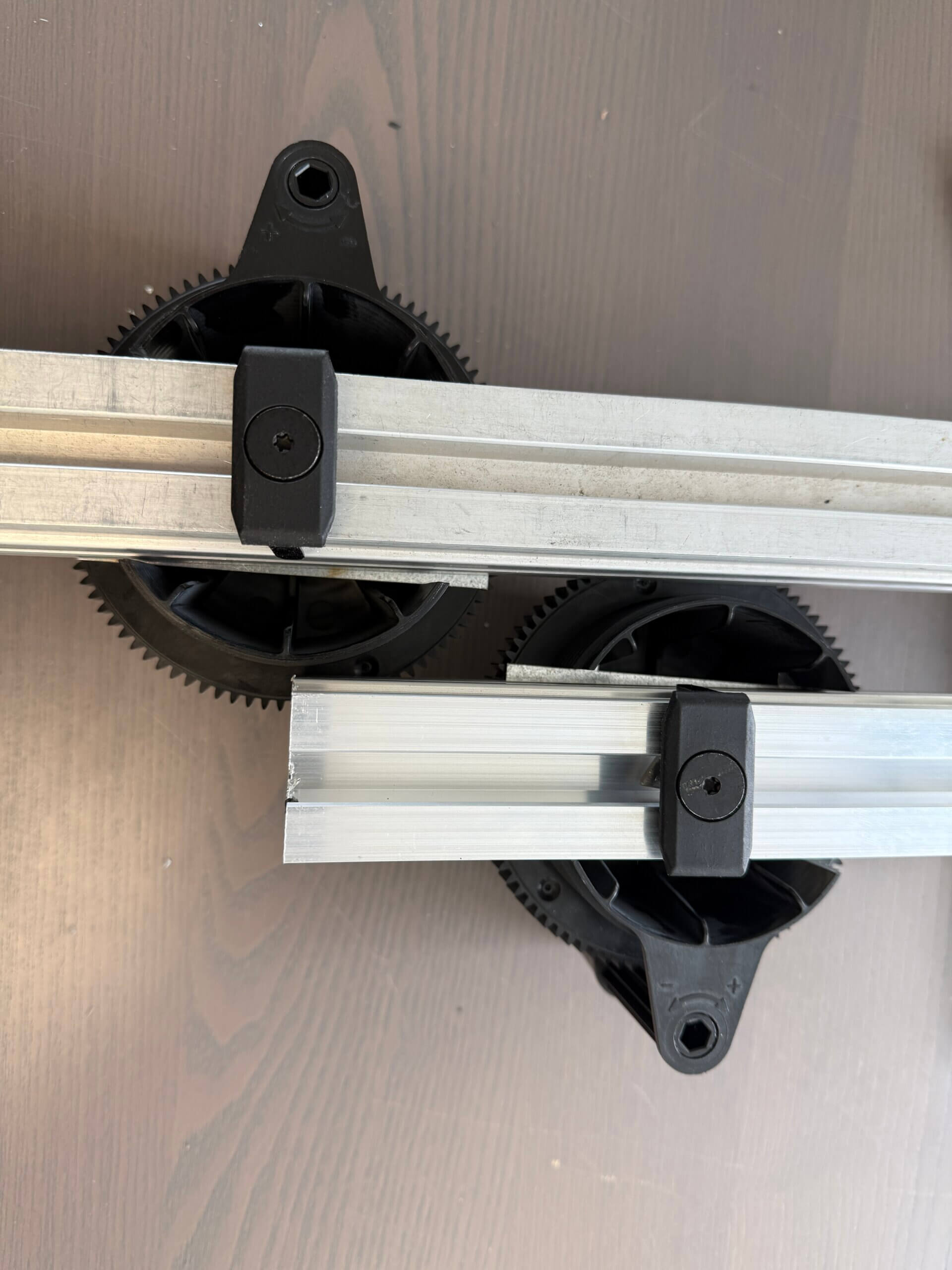 De Aslon® professionele balkendrager kan door middel van een schroefmachine met passend schroefbitje of met een losse inbussleutel omhoog- of omlaaggedraaid worden, terwijl de Aslon® aluminium systeemonderbalken in de balkendrager liggen. Dit werkt veel sneller dan balkendragers die handmatig op de juiste hoogte gesteld moeten worden.