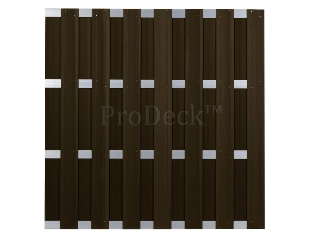Deze schuttingen zijn kant-en-klaar gemonteerd tot tuinschermen van 180×180 cm of 180×200 cm. Er wordt gebruik gemaakt van massieve planken van 10 mm dik, die tegen 4 aluminium dwarsbalken geschroefd zijn. Er zijn veel kleuren leverbaar. Doordat er gebruikgemaakt wordt van 4 dwarsbalken, is de kans dat de planken niet recht blijven uiterst klein geworden. Veel concurrenten gebruiken maar 3 dwarsbalken, waardoor de overspanning te groot wordt en de planken krom gaan trekken. Dat is bij ons niet het geval. Ook leverbaar als extra privacy, waardoor de inkijk (die bij de standaard uitvoering al niet zo groot is) nog meer beperkt wordt. De privacy van de XL-versie is nèt geen 100%, maar dat scheelt weinig.